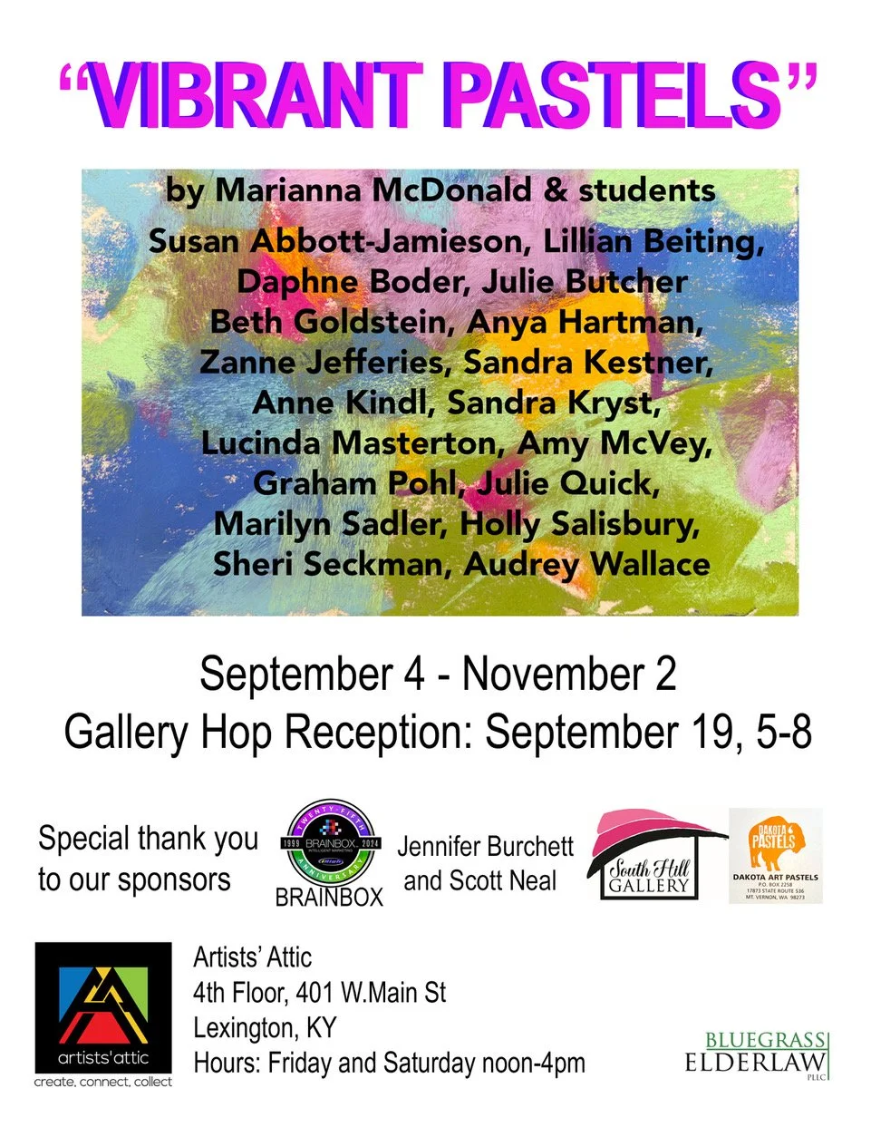 Open Friday’s and Saturday’s from 12pm-4pm and by appointment. Contact artistsatticlex@gmail.com to set up your appointment today!